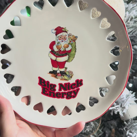 Add some vintage charm to your holiday decor with our Big Nick Energy Christmas plate 🎅! This decorative plate is the perfect addition to your festive decor, featuring a playful design that will make your guests smile. Don't miss out on this unique and quirky piece!